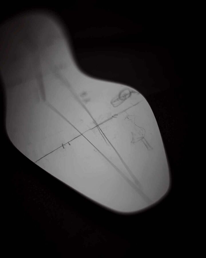英国製ラストは美しいだけでなく、その歩き方に適した設計でした。それに僕の考えを加えたのですが、ひとつ特徴を挙げると、ヒールがやや外側に向いています。
