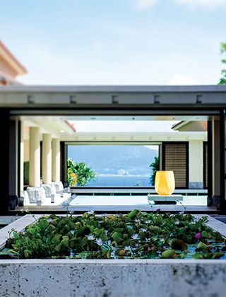 琉球文化が色濃く残る建物と広大な水庭。ゆったりと流れる、大人の沖縄ステイを楽しむ旅