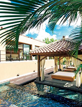 今回お泊まりいただくのは、屋外プール直結の「カバナルーム」か、角部屋の「プレミアデラックスルーム」。全8室のカバナルームには、ジェットバスやデイベッドを完備した約30㎡のガーデンテラスがあり、泳ぎ疲れたら水着のままデイベッドにダイブ!