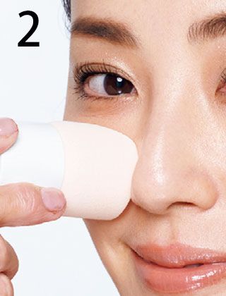 天面と斜めの傾斜の部分を使い、小鼻の脇や口角、目の際などの細かい部分にフィットさせながら丁寧になじませましょう。