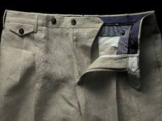 『メンズプレシャス』’16年冬号の同企画で復刻した、「シルバーチノ」もブランドを代表する大人気のパンツだった。今回、特別にプランを練り上げたパンツが、3種類の素材を使い、すべて白による「オール・ホワイト」の世界。これをイタリア語に置き替えて「トゥット・ビアンコ!」と銘打った。白といっても決して同じ白ではなく、各素材の特性を見極め、微妙に違う奥深い魅力の白がつくり出せた。コットン素材はより白く、ウールは上質なアイボリーのように、リネンはほんの少し赤みを帯びた白となった。