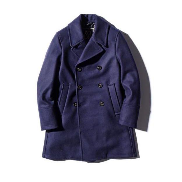 高密度のメルトン生地を用いたピーコートは、冬の定番アウターとも呼べる存在。ベーシックかつエレガントな佇まいは、ビジネスでもカジュアルでも幅広く着こなしができる。表地には撥水加工、中綿には保温性に優れたサーモア社のポリエルテル綿を採用することであらゆる天候にも対応している。やや着丈を長めにとることで若すぎる印象は受けず、年齢を重ねても永く愛用ができる美しいシルエットは、まさに一生モノと呼べる代物だ。
