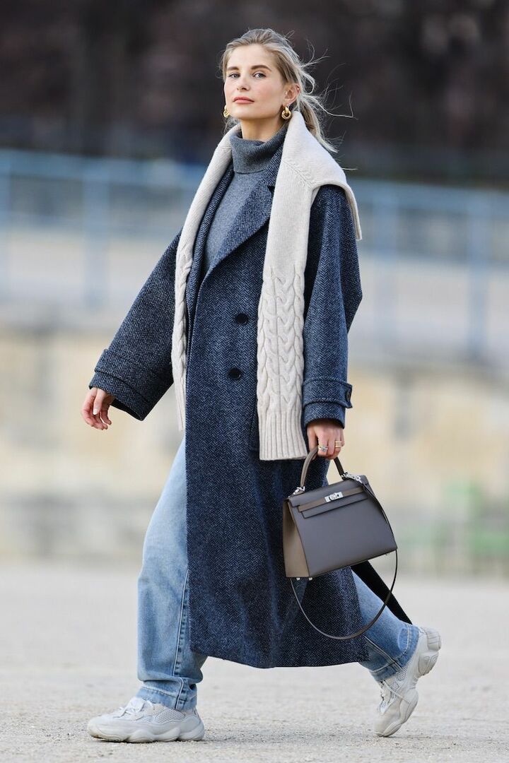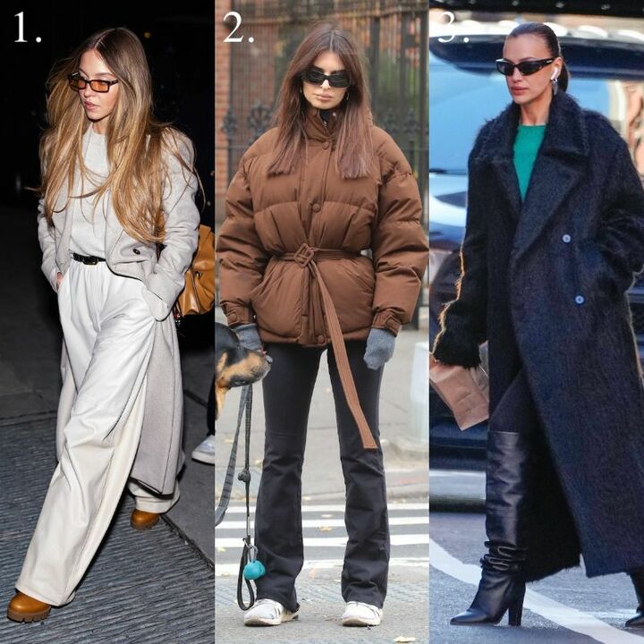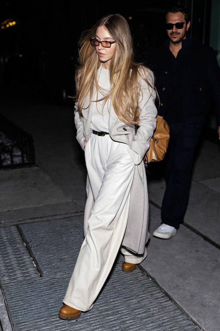 しっかり防寒できるうえに、スマートな印象が叶い、冬にありがちなニット×コートの着膨れを解消してくれるハイゲージニットもおすすめです。シドニー・スウィーニーはニュアンスホワイトのコーディネートにすることで、冷たい空気の街中で凛としたオーラを放ちました。白の軽快さを損なわないよう、小物はソフトなブラウンでリンク。