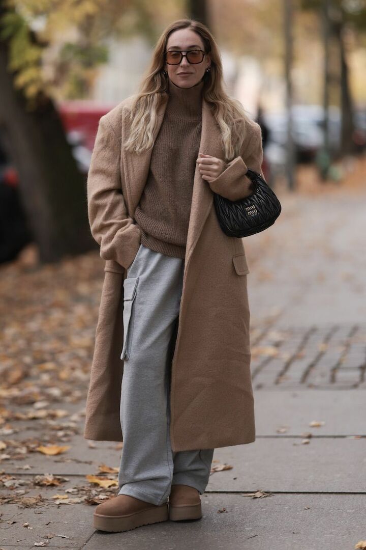 ぬくもりたっぷりのムートンブーツが真冬の外出時のお守りに。ブラウンのハイネックニットに、キャメルのウールコートとムートンブーツを合わせ温感を倍増。ブーツに馴染むリラクシーなスウェットパンツは、ライトグレーを選ぶとほんのりスタイリッシュさを醸すことができます。