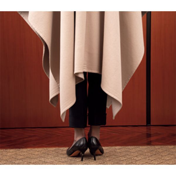 しぐさが女らしく際立つ、ダブルフェースカシミヤのマント。袖丈と着丈のみでサイズが決まるオリジナルのパターンは、さまざまな体型をそれぞれ美しく見せると好評です。