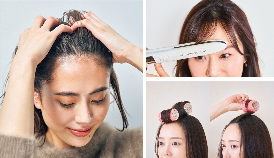 ◆1.目にかからないよう、カーラーやアイロンで根元を起こす