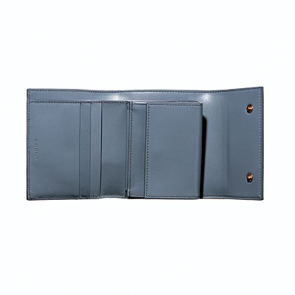 やわらかなレザーで仕立てた「ポルトフォイユ・カプシーヌ」。ポップなブルーは日本限定色です。