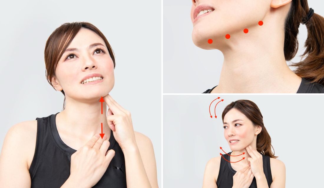 舌を動かし続けると首のあたりまで負荷がかかるので疲労感を覚えるもの。耳の下あたりから首の前側まで数回優しくさすり、クールダウンしておきましょう。
