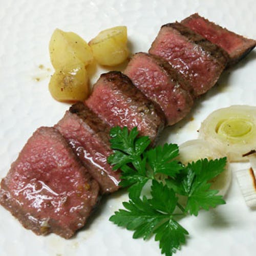食材として用いているお野菜は、シェフの故郷である南信州の大島農園から直送される無農薬・有機栽培で作られた、元気でおいしく彩りも楽しい有機野菜。牛肉は、丹精込めて作られる南信州牛。どれもおいしいだけではない、安心して食べられる食材を仕入れています。彩り豊かな野菜や、ヘルシーでおいしい天然の鹿を使った料理をはじめ、人気のレバームースや定番パテ ド カンパーニュなど、ワインに合う料理も豊富です。