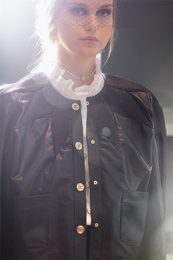 イブニングには、シャネル特有のシックでエレガントな白黒のモノトーン使いも多く、シネマの香りに酔いしれながら、リアルなシーンで、装う人を女優のように煌めかせるシャネルマジックの真髄を見せた。