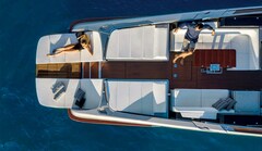 前面、 背面ともに収納力抜群なポケットを配し、バッグの代わりとしても使えるほど。両サイドのボタンで簡単に脱着可能なため、脱ぎ着も楽なのも魅力。
