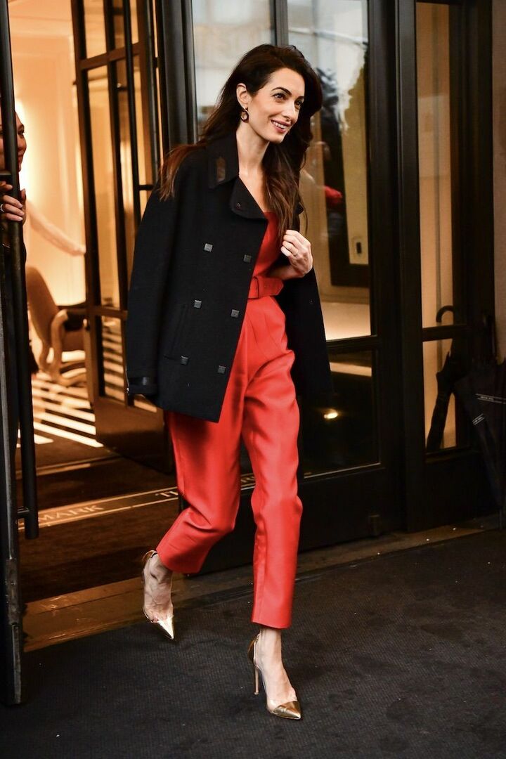 まずはアマルの凛とした雰囲気が引き立つ「パンツ」ファッション。通勤スタイルの参考にできそうなきれいめコーディネートから、オフの日ならではのコーディネートをピックアップ。