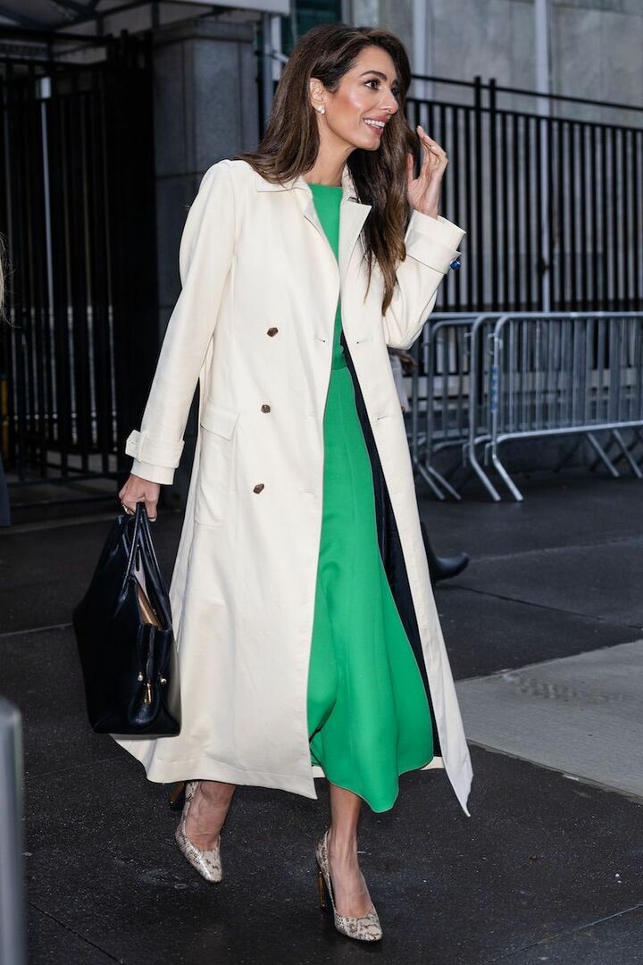 2017年6月に双子のアレクサンダーとエラを出産したアマル。妊娠中もヒールシューズや印象的なカラーを取り入れ、自身のスタイルを大切にした装いが印象的でした。ここからはそんな妊娠期のルックと、子どもたちとの貴重なショットをお届けします。