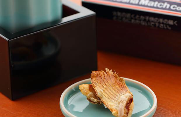 店主いわく、「ヒレ酒は料理」。あぶり焼いたヒレと、約100度に熱した酒を入れて火を点けます。旨味が溢れるヒレ酒は、身も心も温まります
