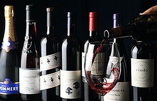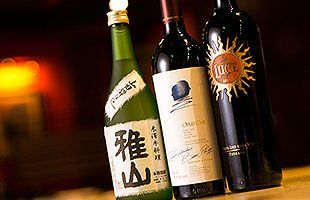 屋号を冠した焼酎、定番銘柄中心のワインアルコール類も充実。胡子氏おすすめの「塩すき焼き」の相棒はシャンパン