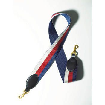 着こなしのポイントになるネイビー×白×レッド配色。幅広なので肩に心地よくフィット。