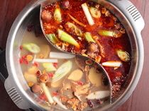 しびれる辛さの赤いスープと深いコクと旨みの白いスープ。漢方素材を使った薬膳スープで身体も心も健康に。大鍋(3名様以上)1,800円