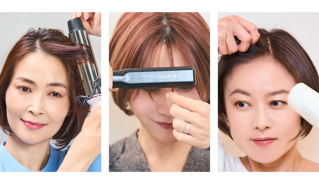 「年齢を重ねると、前髪が割れてしまうという方も多いです。解消するには、前髪をカーラーで巻くときに、分け目をまたぐようにすること。さらに、前髪の根元を、流す方向と逆にしておくと自然になじみます。エラは隠すより、片側を耳にかける程度に。アシンメトリーにすると、顔が明るく見えます」(SHINさん)