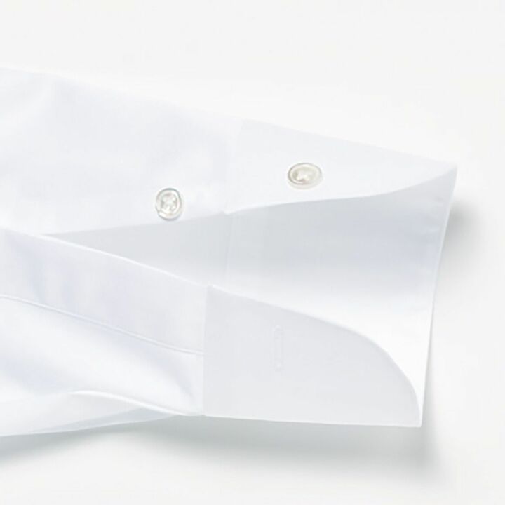 また、このシャツはハンドとミシンを使い分けることにより、生地の性質や着心地を最大限に引き出している。シャツの形を決める5か所(台襟ウラ、肩ヨーク、アームホール、前立て、かんぬき留め)はハンド仕上げに、ほかの部分をミシンで縫うことで、高い耐久性を持ちつつ、やわらかな着心地が生まれるのだ。また、シャツの襟先は縫い代が2ミリ程度しかなく、縫製の高い技術力がうかがえる。