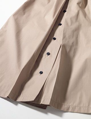 トレンチ特有のベルト飾りで、きゅっと細くなった袖口にも注目。クシュクシュと袖を上に上げ、ベルトを留めればOK。クルクルと巻くことなく、自然な着くずしがかないます。