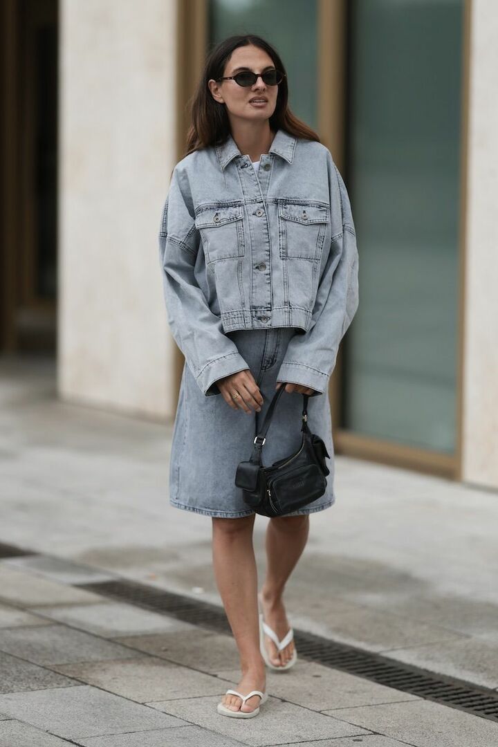 まずは「上下の色を揃える」デニムオンデニムコーディネートをピックアップ。セットアップを活用したり、色を揃えれば一体感が生まれ、簡単に洒落た印象が実現。