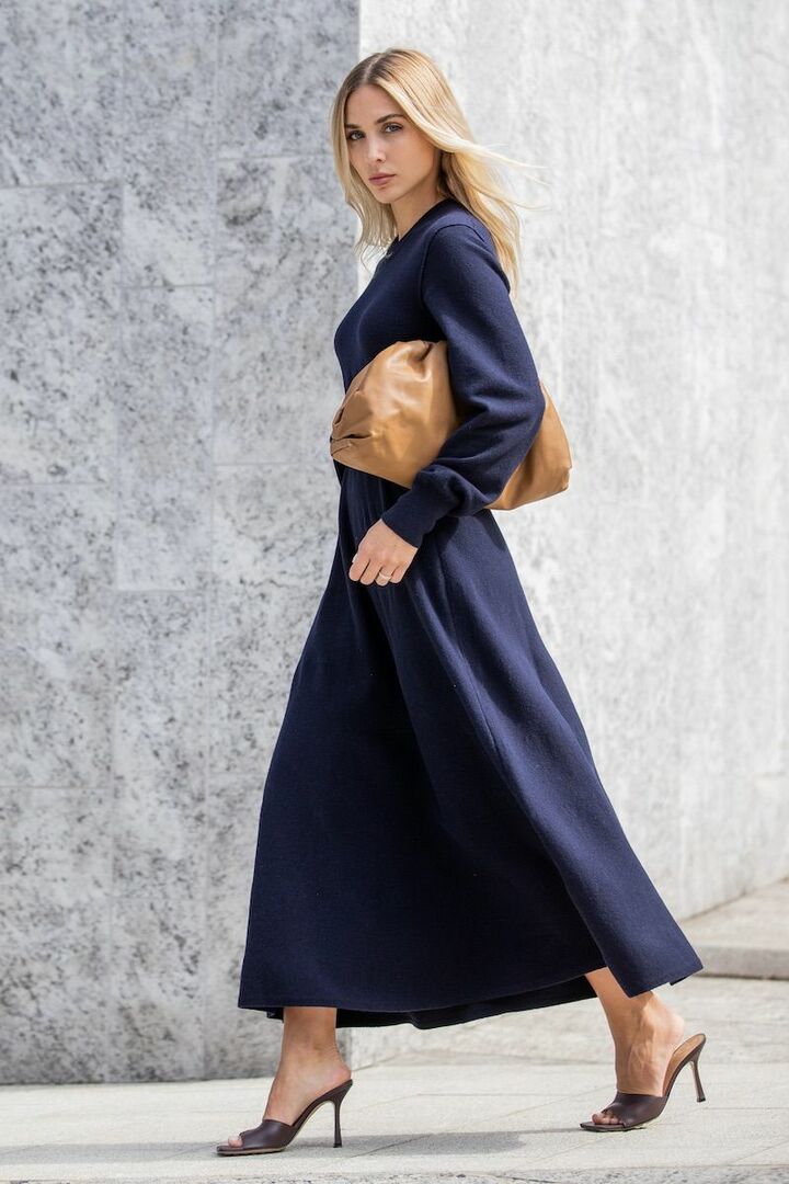 「ネイビー」を合わせ上品さを引き上げ
