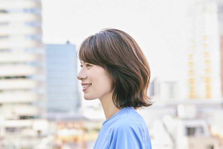 「つくり込みすぎないけれどおしゃれ感があり、カジュアルだけど女っぽさもあるという絶妙なバランス感。適度にきちんと見え、どんなシーンにもなじむ雰囲気がありながらも、コンサバになりすぎず、かといってラフになりすぎない、程よい抜け感を意識しました。外ハネのスタイリングにより、ボリュームが出にくい髪質でもさみしく見えず、バランスよく見せてくれる効果も生まれます。ボリュームを程よく抑えたい人にもおすすめです」(BEAUTRIUM Aoyama ヘアスタイリスト 中高下由真さん)。