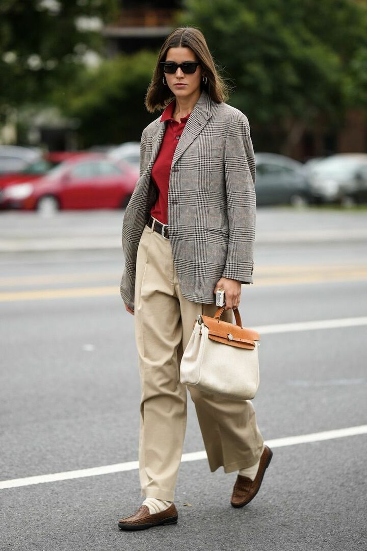 ローファーとチノパンツを組み合わせ、トラッドなムードをアピール。さらにポロシャツとチェック柄ジャケットを添えれば完成度がアップ。鮮やかな赤を起爆剤にして、いっきにフレッシュな表情へ。