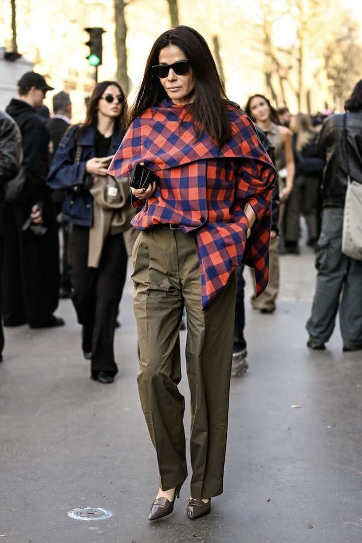 カジュアルとハンサムの「いいとこ取り」をできるカーキのチノパンツは、センタープレス入りのデザインならきれいが加速。ブルー×レッドのギンガムチェックブラウスを合わせてもトゥーマッチにならないのは、落ち着いたカーキのチノパンツとだからこそ。