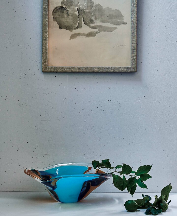「昔から、大きい器が好きなんです(笑)。このイムディーナ・ガラスも、そう。6、7年前、雑誌で見た鮮やかなブルーにひと目惚れして、どうしても手に入れたくてマルタ島へ。気に入った色と柄、フォルムが決まったら、『この店でいちばん大きなものをください!』とお願いして、奥から出してきてもらいました。空っぽだったスーツケースは、大きなイムディーナ・ガラスの器たちであっという間にいっぱいに。ものすごく重かったけれど、それもまたいい思い出です」