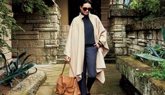 デジタルインフルエンサー、アンナ・ウィンターがドイツ、ベルリンでスナップされていたときの着こなしです。白タートルの上に黒トップス、ボトムにデニムを投入し、ベージュのコートを重ねていました。落ち着きがちなカラー合わせですが、デニムを合わせることでカジュアルさが加わり、若々しくヘルシーさを印象づけます。面積の大きなコートの色に淡いベージュをセレクトしたことも、軽やかさの決め手に。ヘアバンドで顔周りをすっきり見せたり、シルバーの大きめピアスなど、ベーシックスタイルをシャープに仕上げるアレンジも注目ポイントです。