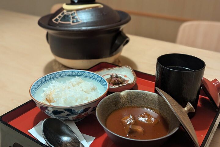 炊き物として、柔らかく煮た牛タンが登場。そのまま食べても、土鍋で炊いたもち麦ごはんにかけて食べてもおいしい一品でした。