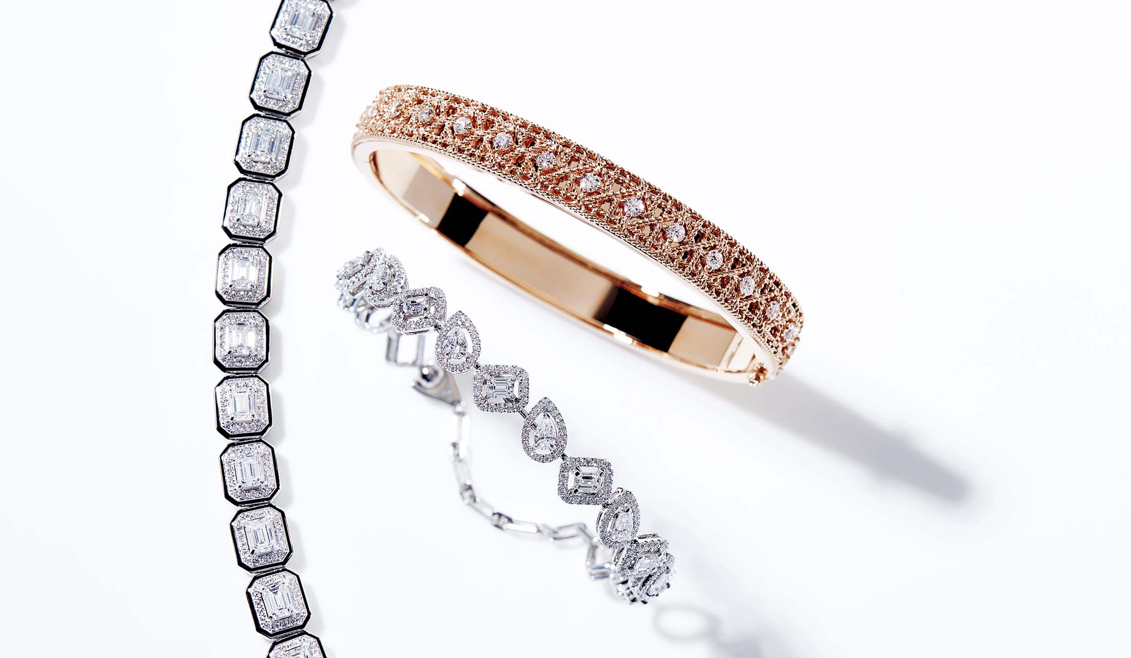ソリテールに加えて、手元の上品な重ねづけを楽しむために、シンプルなエタニティやボリューム感のあるパヴェも気になるところ。バングルも含めて、ラグジュアリーなダイヤモンドレイヤードをご紹介します。