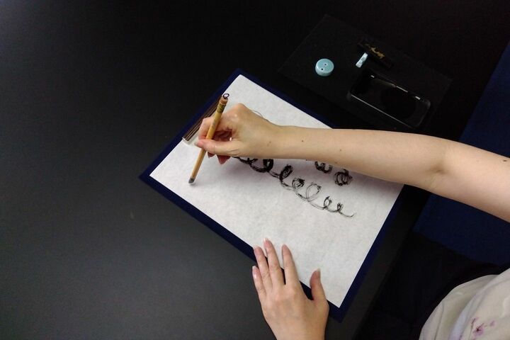 「文字」にとらわれることなく筆を自由に動かすのは思いのほか楽しく、外国人にも人気のアクティビティということです。