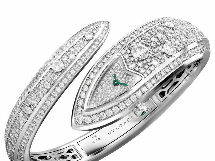 2025年「ブルガリ」は、さながら『セルペンティ』祭り! 1月に発表した『セルペンティ セドゥットーリ』、『セルペンティ トゥボガス』に続き、ジュネーブの時計展では、この『セルペンティ エテルナ』を電撃発表! メゾンのクリエイションの核となる『セルペンティ』が、新たな解釈のもと、これまでと全く異なる魅力を湛えたジュエリーウォッチへ、美しき再生を果たしたのです。