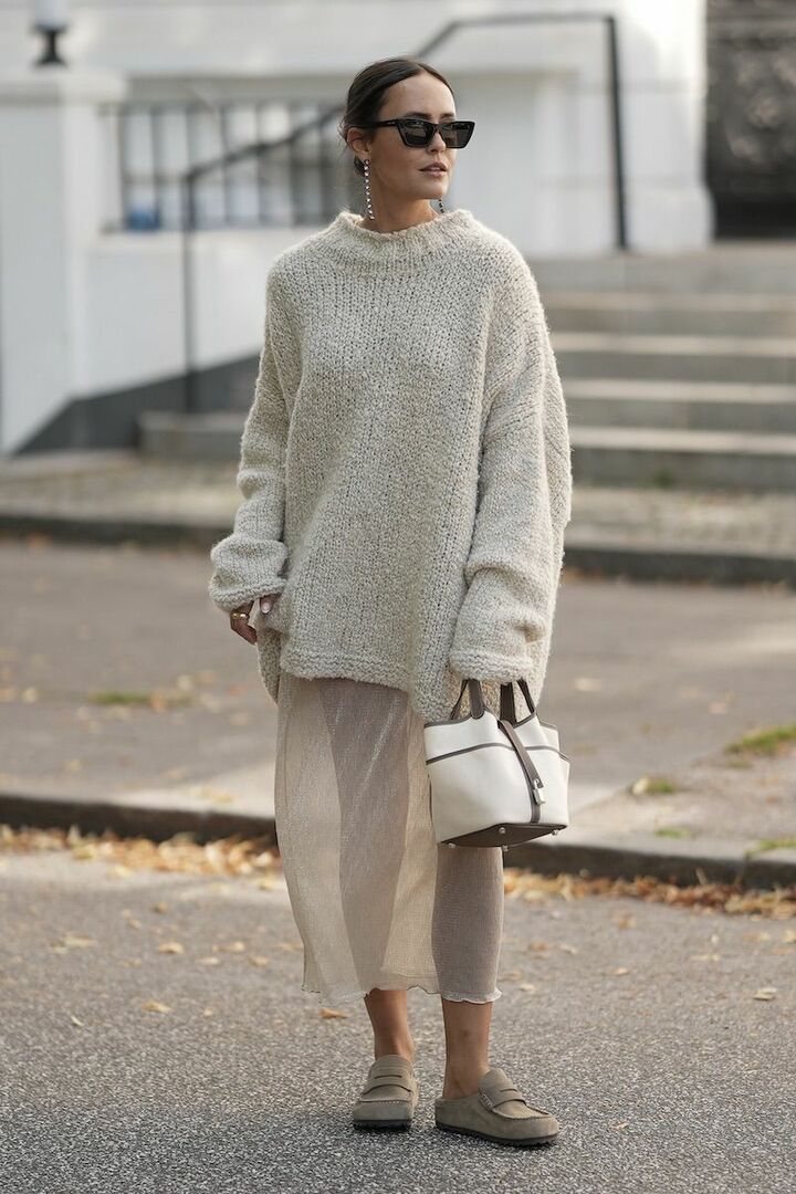 オーバーサイズニットはカジュアルな印象だから「きれいめ小物」を使ってクラスアップに繋げましょう。