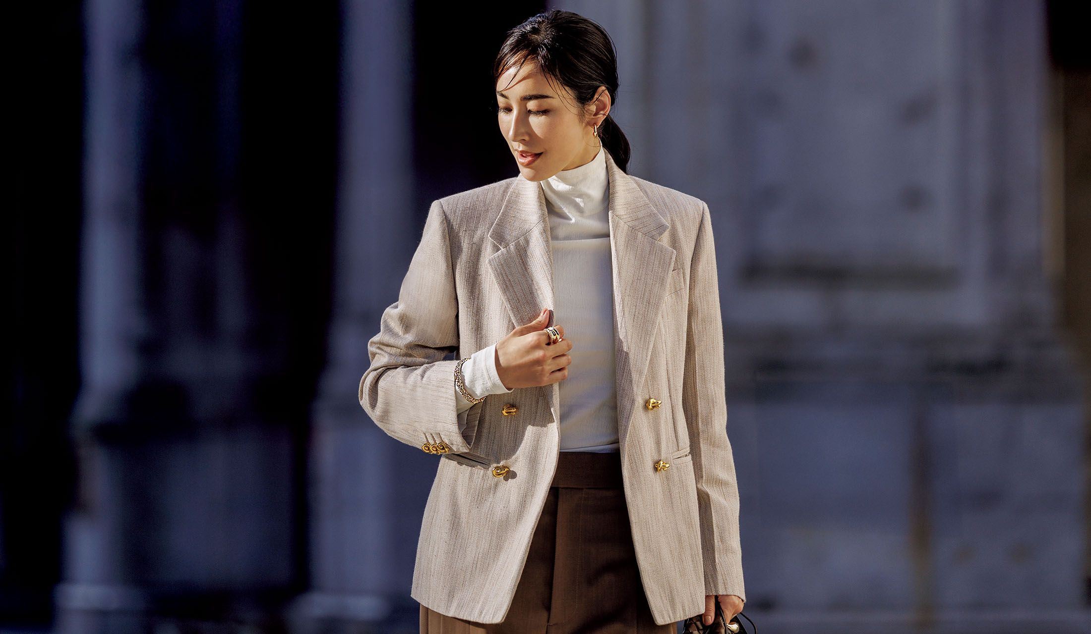 雑誌『Precious(プレシャス)』が提案する365日のコーディネート。本日お届けするのは、「ボッテガ・ヴェネタ」のテーラードジャケットの着こなしです。