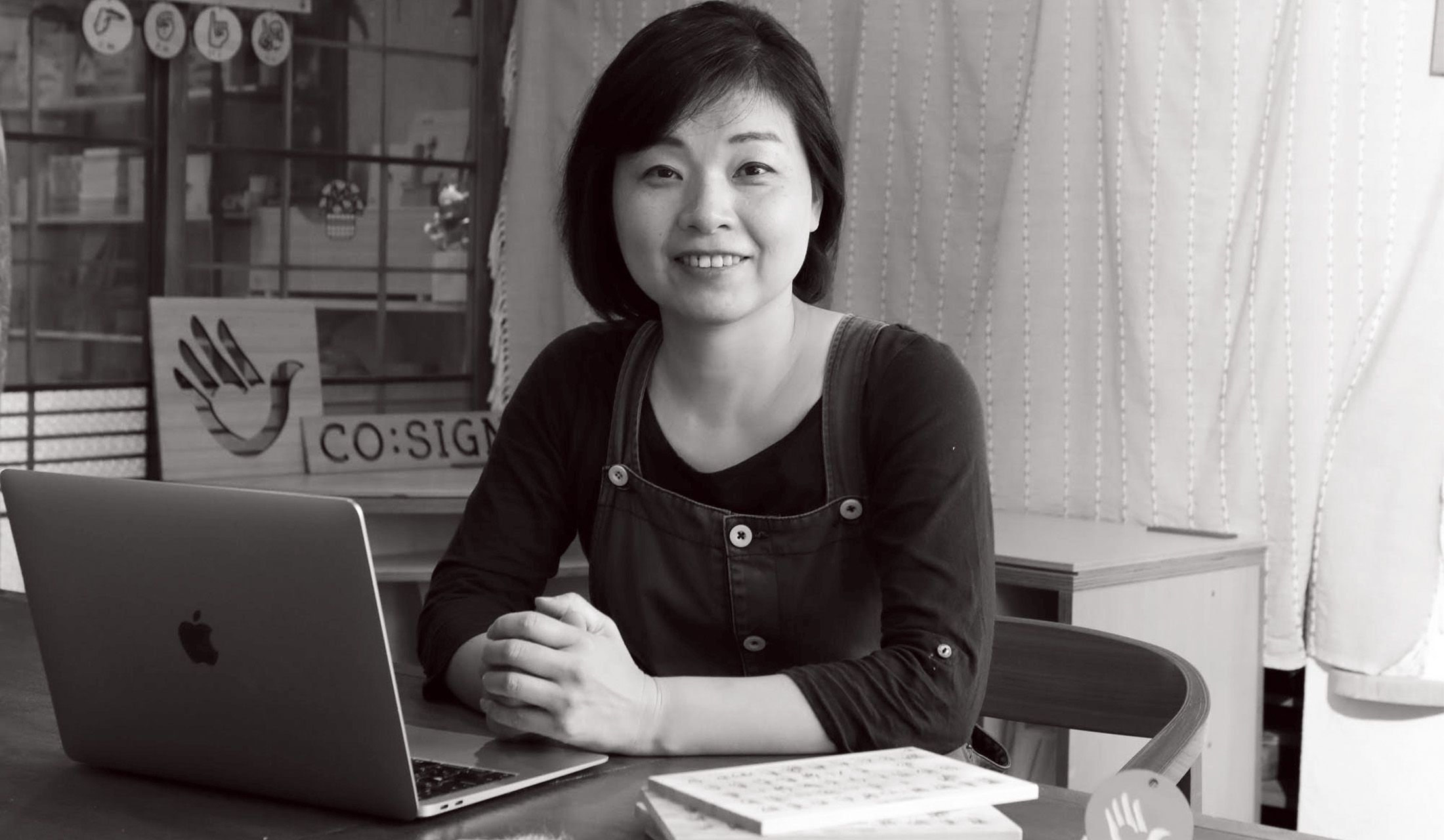 「美容室の予約アプリを参考に、指一本で通訳を頼んだり、受けたりすることができるアプリ『Sign-mi(サインノミ)』をつくりました。これがあれば、手話通訳士という資格所有者はもちろん、手話を学んでいる人の活躍の場を増やすことができるし、聴覚障がい者は仕事や病院という目的でなくても、気軽に通訳を頼むことができます。ほかにも手話ができることがひと目でわかる手話マークを制作して展開中。私の目標は、ろう者が自分の能力を限定することなく、進みたい方向へ素直に歩くための可能性を豊かに広げていくこと。この立場での起業は簡単ではありませんでしたが、だからこそ得られた知見を生かして、私のあとに続く人を増やしていきたいと思っています」