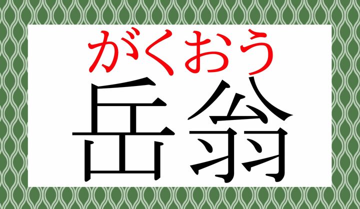 「岳」は「妻の親」につける定番の言い回しで、「岳母(がくぼ)」は「妻の母」のことです。「岳翁(がくおう)」は、「高齢の男性」を意味する「翁」を用いているので、「高齢の妻の父」というイメージの言葉になります。第三者が、相手の「妻の父」を敬う言い回しとして用いる場合は「御岳父様(ごがくふさま)」など、丁寧表現の「御」や、敬称の「様」を付加して表します。
