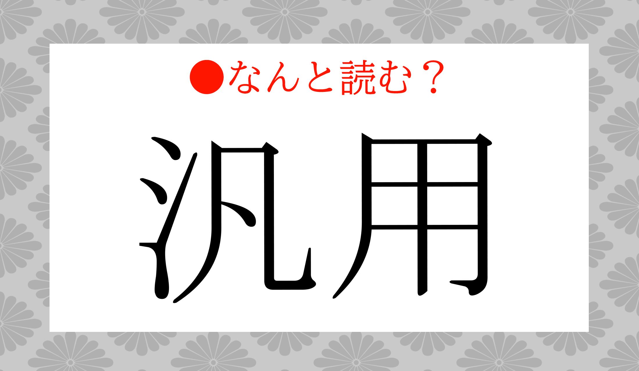 「汎」の字の「凡」というつくりのイメージからか、「汎用」を「ぼんよう」と誤読するケースが多いようです。「汎用性(はんようせい)」という言葉はよく使われ、「汎(ハン)」が常用漢字の読み方でもあることから、間違えるのは、ちょっと恥ずかしいですね。しっかり覚えておきましょう。
