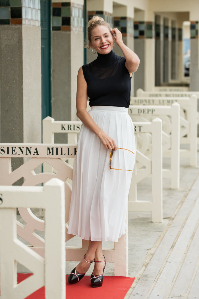 次に、30代後半からの「美貌遍歴」をお届けします。ファッショニスタとしても定評があるシエナ・ミラー。洗練された着こなしにも注目です。