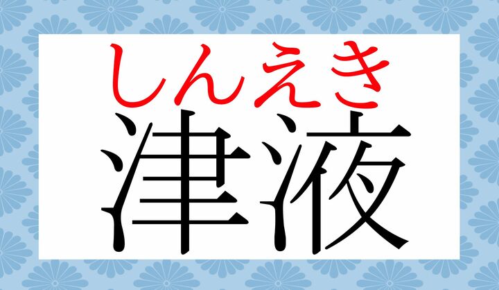 「興味津々(きょうみしんしん)」という熟語や、「天津飯(てんしんはん)」にも、「津(シン)」という読み方が使われていますが、「津液(しんえき)」、正しく読めましたか?「津」は「みなと。渡し場」「凍み出る。わき出る」「体から出る液体」などの意味をもつ字です。