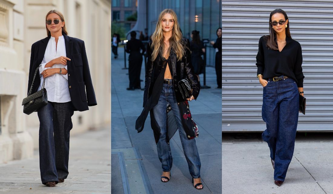 2025年9月13日、ロージー・ハンティントン=ホワイトリーもNYファッションウィークに登場。親しみやすいデニムパンツを頼りにして、透ける素材と花柄が目を引くシャツワンピースと、ストイックなレザージャケットのモードなレイヤードスタイルにトライ。軽やかな素材と重みのある素材を組み合わせながら、ワンピースのボタンをラフに留めて素肌を覗かせ、奥行きたっぷりに。デニムは黒に馴染む濃紺をセレクトすると調和が生まれて好バランスです。