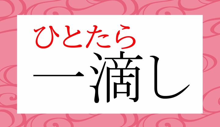 「滴」の訓読みは、常用漢字の範疇で「滴(しずく)」「滴(したた)る」、さらに表外読み(常用漢字表に掲載されない読み方)であとひとつございます。