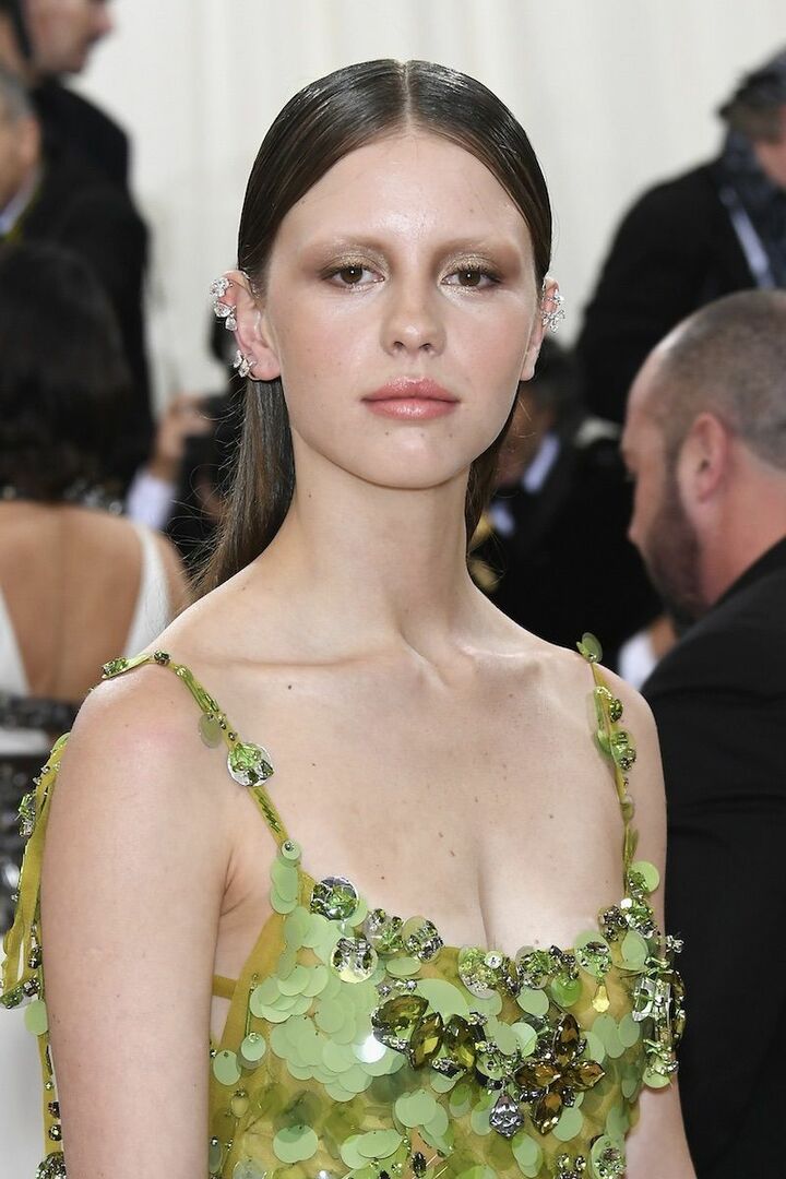 ミア・ゴスの個性を支えるのは、ごく薄く細い眉毛。そんなトレードマークが活きた「メイク」写真をピックアップ。