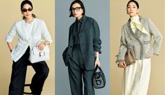 例えば、「ピエール アルディ」のシューズコーデ。明るいグレーのスーツをキャンバスに、鮮やかな色を投入するだけで、印象も気分も華やぎます。イエローのブラウスだけでなく、フォレストグリーンの靴が、ともすれば堅くなりがちなグレーの装いにみずみずしい個性をプラス。ぜひチェックしてみてください。