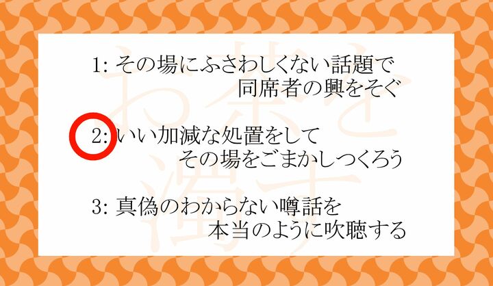 1:その場にふさわしくない話題で、同席者の興をそぐ