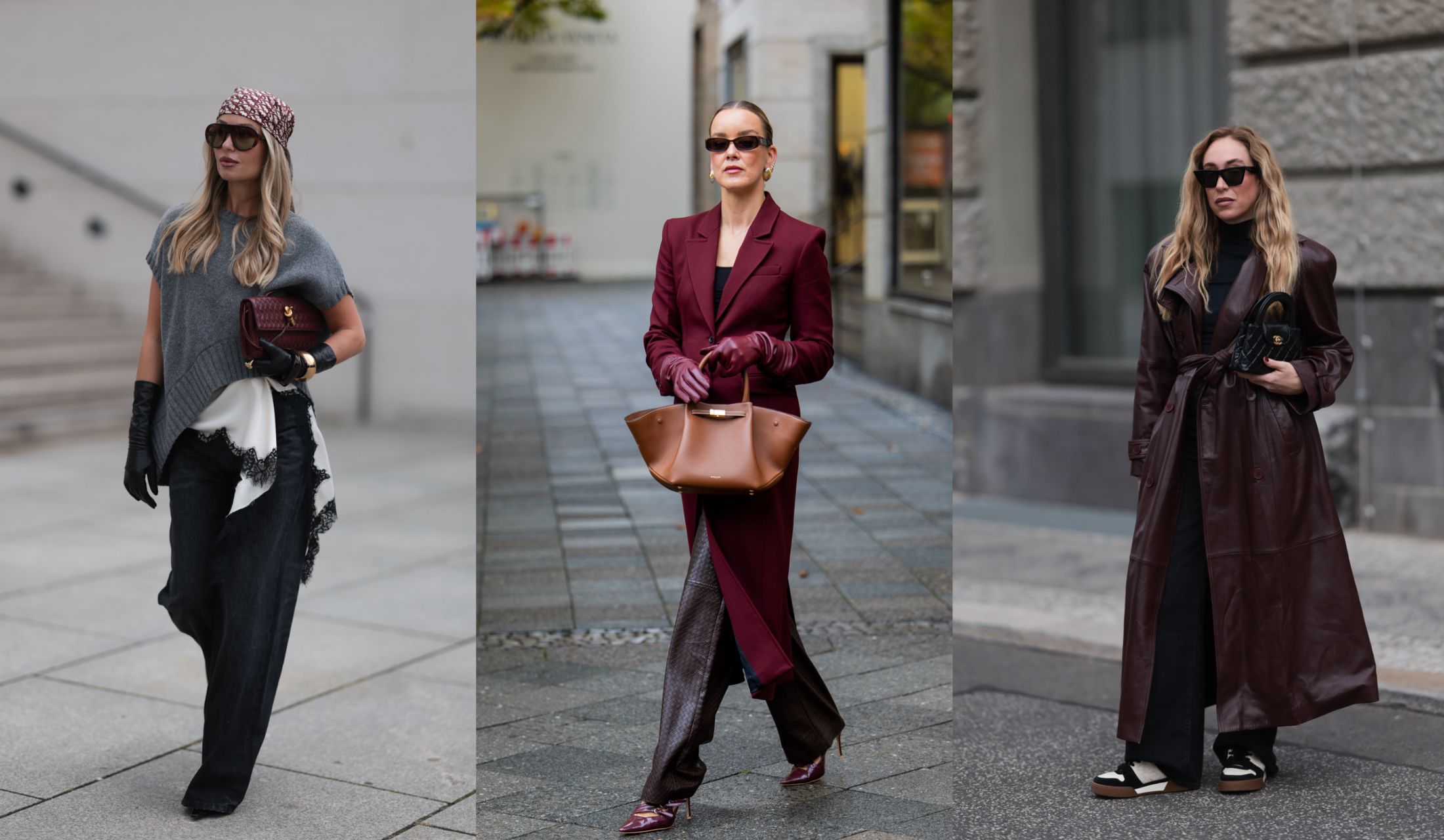 数ある2025年秋冬のトレンドカラーでも、まさに本命といえるのが「バーガンディ」。フランス・ブルゴーニュ地方の赤ワインに由来する色で、華やかな赤でありながら穏やかさもある、上品で官能的なトーンです。さっそく取り入れていたファッショニスタたちのコーディネートを、ベルリンでのフォトセッションからピックアップしました。