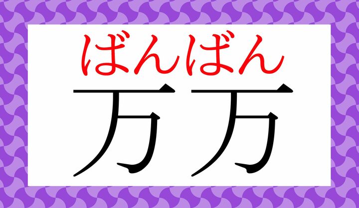 「万万の事情」と言えば「いろいろと多くの事情」という意味になり、例文のように「万万ありえません」と言えば「万が一にもありえない」という意味になります。「万万(まんまん)」と読んでも不正解ではありませんが、古語に近い古い言い回しになるので、現代では「万万(ばんばん)」という読み方が一般的かつ無難です。