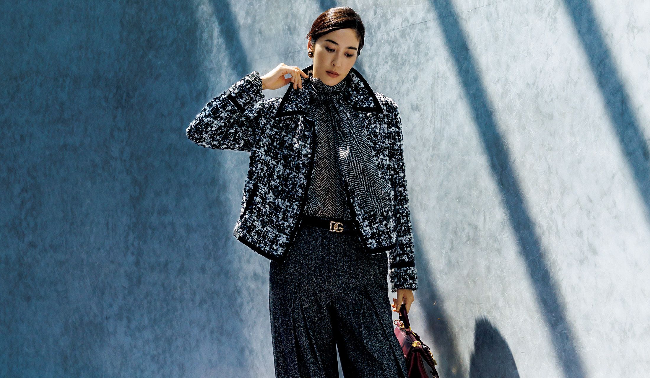 雑誌『Precious(プレシャス)』が提案する365日のコーディネート。本日お届けするのは、「ドルチェ&ガッバーナ」のジャケット、ブラウス、パンツの着こなしです。
